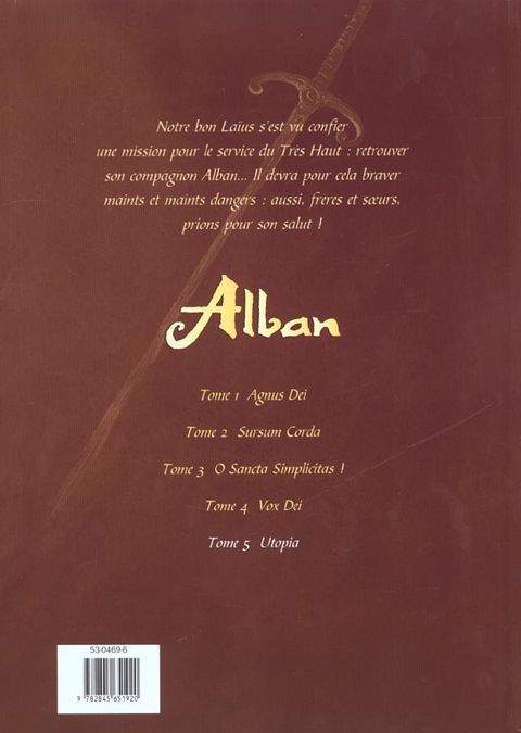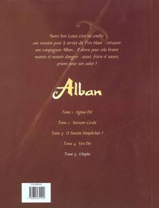 À cause de ses idées généreuses, Alban a payé de sa vie... Alors qu'il voulait réconcilier le Peuple des Nains et les représentants de la Sainte Église, un boulet de canon malencontreux a envoyé notre moinillon aux côtés du Très Haut ! C'est ce que tout le monde croit, même Laïus, son fidèle compagnon, jusqu'au jour où l'Archevêque vient au monastère des Cabécoux lui apprendre l'incroyable nouvelle : Alban serait vivant et se serait réfugié en la cité d'Utopia, une incroyable citadelle qui admettrait en son sein toutes les religions, hérésies, apostasies et schismes possibles... Alors courageusement, Laïus reprend son bâton de pèlerin et se dirige vers Utopia, qu'il atteindra après de longues semaines de marche. Sitôt entré dans la cité, on lui propose de devenir tour à tour adorateur de l'Oignon, Frère du Soleil, Compagnon de Satan... Seul l'aide du Très Haut saura lui donner assez de force afin de résister à toutes ces folles tentations, car il n'a qu'un seul but : retrouver son ami Alban.