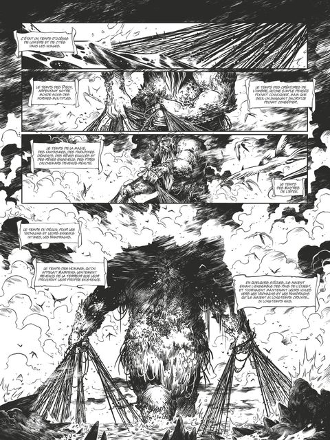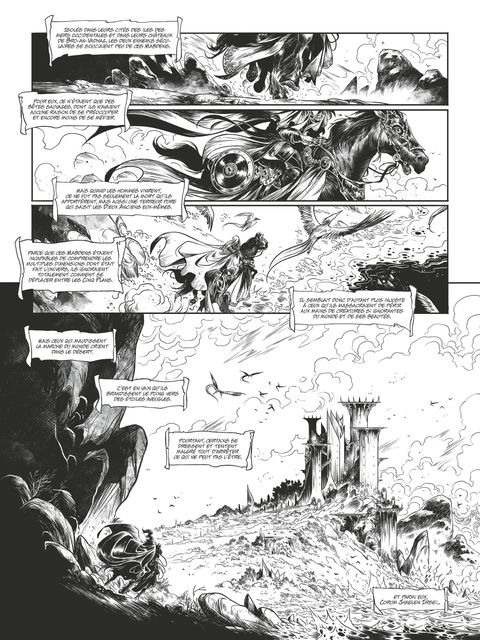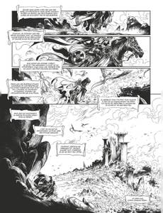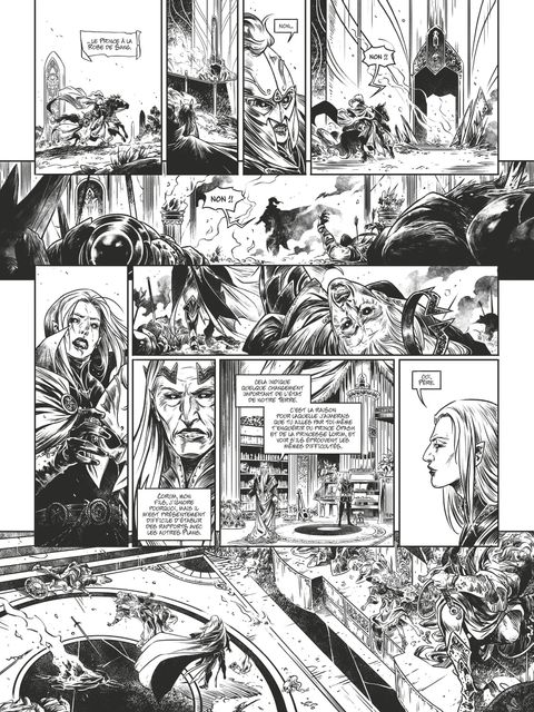 Le dernier survivant À une époque où les dieux arpentaient le monde, une horde de cavaliers humains sème la terreur. Assoiffé de sang, leur chef, le comte Glandyth, ne laisse que des cendres derrière lui en rasant châteaux, cités et forteresses. Bientôt, Corum Jhaelen Irsei, dernier survivant d’une race oubliée, la race des Vadhaghs, va voir son destin basculer. Capturé, mutilé, celui que l’on surnomme "le Prince à la Robe écarlate" est sauvé par le comte Moidel. Ce dernier, afin de défendre son territoire, va invoquer un sorcier mystérieux, Shool, qui confie à Corum une mission quasi impossible : voler le cœur du plus puissant des dieux du Chaos, le Chevalier des Épées, Arioch, responsable de la destruction de son peuple. Désespéré de n’être que le jouet de divinités capricieuses et de leurs guerres absurdes, Corum s’engage dans une quête de vengeance pour regagner son honneur perdu et renouer avec son intégrité physique, mais qui le fera aussi remettre en question sa propre humanité…Le scénariste David Chauvel (Arthur, Wollodrïn, Les 5 Terres…) signe son grand retour chez Glénat avec ce premier tome spectaculaire. Proche de l’univers d’Elric, cette nouvelle série de fantasy épique est la troisième saga de Michael Moorcock consacrée à ses plus grands personnages littéraires adaptée en bande dessinée aux éditions Glénat. Avec un récit dense et tragique, Chauvel offre à cette œuvre magistrale un souffle nouveau qui prend forme grâce au trait incandescent et richement détaillé du prodige italien Luca Merli.