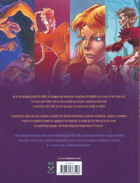 Le monde de Mu-Dhara est sous la coupe de Ner-Ramnus. Le tyran ponctionne la vie des plus jeunes habitants pour en tirer un fluide vital, breuvage dont il use pour asseoir son pouvoir. Les malheureux cobayes sont ensuite relâchés à l'état de vieillards, à peine capables de rejoindre leurs villages. Ner-Rzmnus s'est retranché dans un mystérieux vaisseau spatial échoué sur la planète. Après en avoir tué les occupants, il se sert de leur fille Diamante pour subvenir au fonctionnement de l'engin, elle seule en possédant la connaissance nécessaire. Alef-Thau est l'un des enfants de ces cobayes utilisés par Ner-Ramnus. Sa mère ayant accouchée après la ponction de ses forces vitales, le bébé est né sans membre. Recueilli par Hogl, un malicieux vieillard aux pouvoirs divinatoires, Alef-thau va développer ses capacités psychiques pour pallier son handicap. Selon Hogl, il pourrait être celui qui délivrera Mu-Dhara du terrible Ner-Ramnus. Alexandro Jodorowsky signe là un haletant récit d'héroic-fantasy, Arno rendant forme à ce monde particulièrement intriguant. Cette intégrale en deux tomes permettra à plusieurs génération de lecteurs de (re) découvrir les aventures du vaillant Alef-Thau !