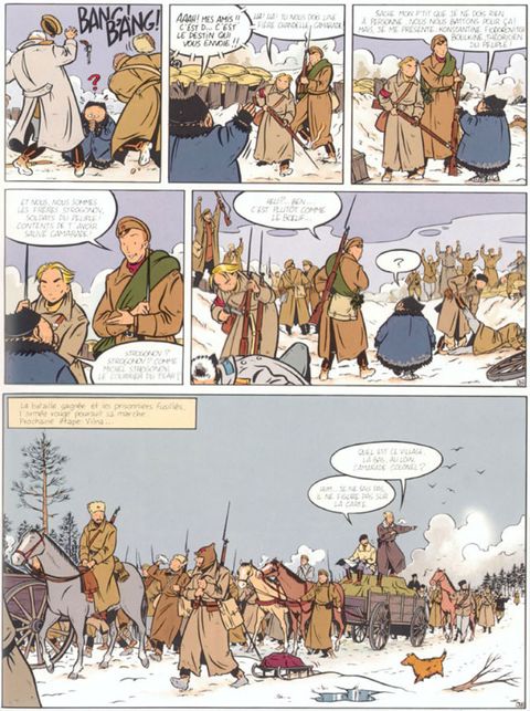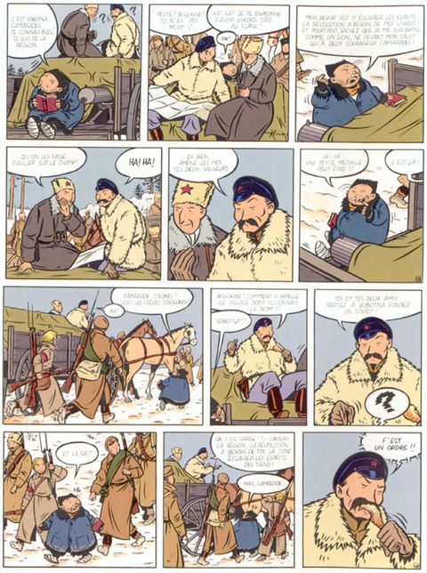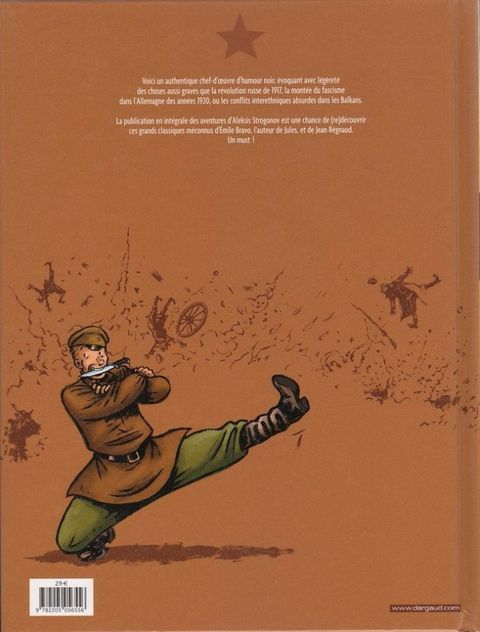 Voici un authentique chef-d'oeuvre d'humour noir évoquant avec légèreté des choses aussi graves que la révolution russe de 1917, la montée du fascisme dans l'Allemagne des années 1920 ou les conflits interethniques absurdes dans les Balkans. La publication en intégrale des aventures d'Aleksis Strogonov est une chance de (re)découvrir ces grands classiques méconnus d'Émile Bravo l'auteur de Jules, et Jean Régnaud. Un must ! Aleksis Strogonov, sorte de Tintin d'origine russe, nous fait partager, à travers ses voyages, sa vision d'un monde où l'horreur et la tragédie sont désamorcés par le comique des situations aberrantes, provoquées ou subies par les personnages hauts en couleurs qu'il croise sur sa route. Le contexte historique de chaque album met en relief les comportements profondément humains et contradictoires des protagonistes, leurs petites et grandes lâchetés, leur stupidité devant l'adversité et les coups du sort. Ce qui donne un formidable parfum de vie à ces récits et permet aux auteurs de pratiquer avec quel recul ! un humour formidablement salvateur, jetant un regard lucide, ironique, mordant, et pourtant compatissant, sur l'homme de la rue pris dans les petits rouages de la Grande Histoire. La lecture des véritables aventures d'Aleksis Strogonov constitue un remède souverain contre la bêtise et la dépression ! !