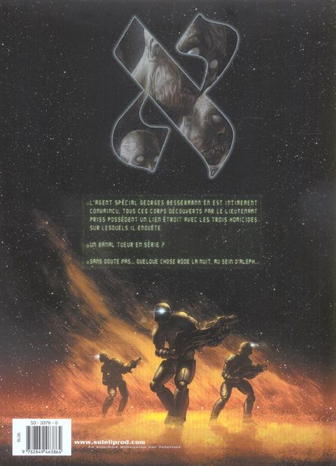2258, Aleph. Deux enquêtes sont en cours... La première, menée par le lieutenant Nawel Priss pour le compte d'une multinationale, concerne la mort suspecte de trois cents membres de l'équipage du vaisseau cathédrale Luna, et la disparition d'un gaz indispensable à l'oxygénéisation : le Muta-Arsenic. La seconde, menée par l'agent spécial Georges Bessermann, concerne trois homicides. Les victimes ont été vidées de leurs fluides vitaux, leur colonne vertébrale a été prélevée, et le meurtrier les a tous affublées d'un curieux tatouage... Bessermann en est convaincu : les deux affaires sont liées !