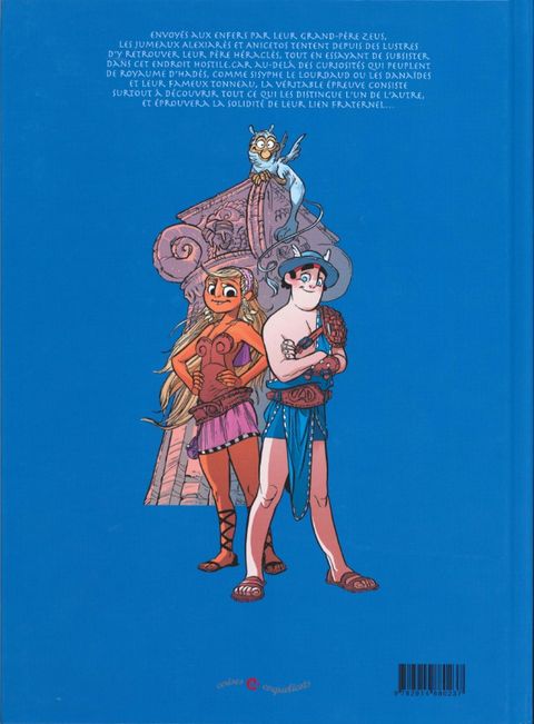 Contrarier une fois de trop le puissant Zeus, leur grand-père, n'était peut-être pas la plus judicieuse des idées. Maintenant, voilà Alexiarès et Anicétos retranchés dans les profondeurs du royaume d'Hadès. Contraints de se nourrir au petit bonheur la chance de trucs gluants et de fuir en permanences des monstruosités de tous poils, pour être francs, ils ne savent même plus depuis combien de temps ils trainent leurs guêtres dans les parages, à la recherche de leur père. Mais il y a pire encore. Non seulement Alex joue au père-la-morale en toutes circonstances, mais il semblerait qu'il ne soit plus tout à fait insensibles aux charmes des filles de son âge... En d'autres mots, c'est VRAIMENT l'Enfer ! Le calvaire des jumeaux prend une toute autre tournure lorsqu'au détour d'une colline, Ani fait la rencontre du robuste Sisyphe, poussant sans fin son rocher au sommet. Une piste qui va les mener jusqu'au nightclub le plus tendance du monde souterrain, la fameuse boite de Pandore, non sans être passés par les forges de tonton Héphaïstos ou s'être liés d'amitiés avec ces têtes de linottes, mais cependant farouches guerrières, que sont les Danaïdes.