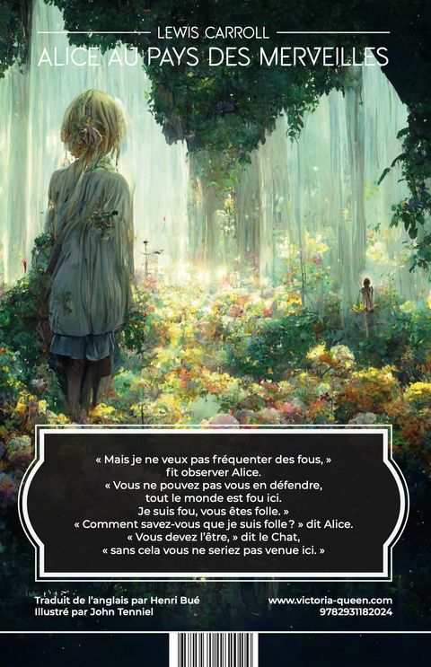 Alors qu'elle somnolait sur le bord d'une berge durant une longue journée d'été, le regard de la jeune Alice Liddell est attirée par un drôle de lapin blanc qui parle ! Décidée à le suivre, elle va s'embarquer dans l'une des aventures les plus folles de la littérature classique. Immortalisé dans l'imaginaire collectif grâce à Disney et Tim Burton. Redécouvrez ce chef-d'oeuvre de Lewis Carroll, dans une prestigieuse édition totalement illustrée par John Tenniel.