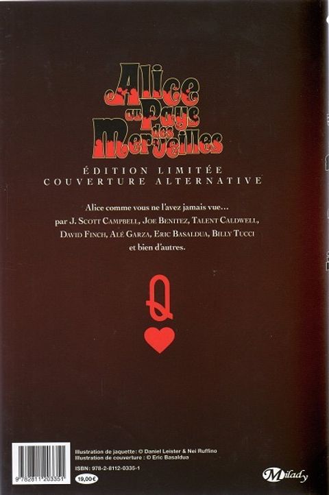 Tout le monde connaît Alice au pays des Merveilles... Mais vous n'avez jamais vu Alice comme ça ! Un artbook irrésistible car unique au monde, réunissant les plus charmantes Alice de la BD américaine :J. Scott Campbell, Joe Benitez, Talent Caldwell, David Finch, Alé Garza, Eric Basaldua, Billy Tucci et bien d'autres.