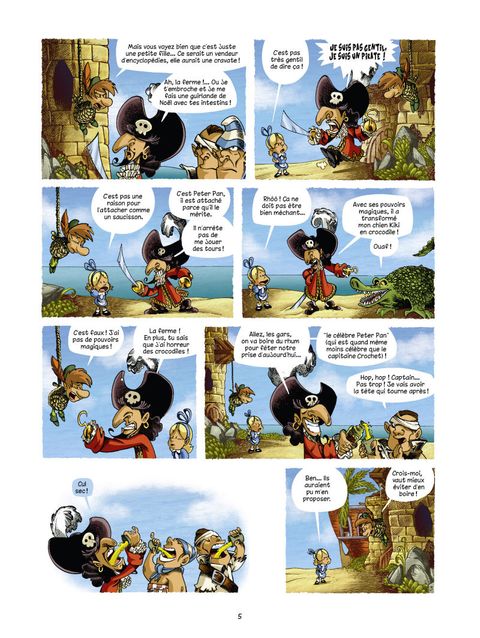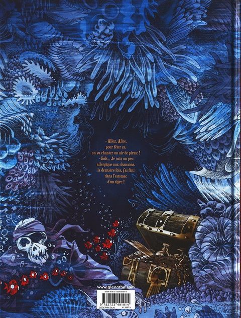 Ça y est, Alice a quitté le pays des singes. Mais elle n’est pas rentrée chez elle pour autant ! La voilà rendue au « pays de Nulle part », celui du célèbre capitaine Crochet aux prises avec un Peter Pan qui a la manie de transformer tous ceux qu’il croise en crocodiles. Crochet et son équipage embarquent Alice avec eux pour récupérer l’antidote à cette fâcheuse transformation. Mais à peine sont-ils partis qu’un terrible tourbillon précipite leur navire tout droit… au pays des singes !Voici la suite des aventures délirantes de la petite Alice, où Tébo détourne joyeusement les célèbres figures de la littérature jeunesse. En résulte une galerie de personnages loufoques, tous plus déjantés les uns que les autres, prenant vie grâce au dessin impeccable d’un Keramidas au sommet de sa forme !