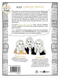 Alice pense qu'en devenant avocate commise d'office, elle va donner du sens au serment qu'elle a prêté : DEFENDRE, avec désintérêt et probité, la veuve et l'orphelin ! Rien ne se passe pourtant comme elle l'imaginait. Entre les nuits au commissariat, les clients difficiles, sa morale à mettre de côté et les associés du cabinet qui lui mettent des bâtons dans les roues... cela a tout du sacerdoce. Inédite, cette première série de romans graphiques juridiques vous propose de suivre les aventures juridico-judiciaires d'Alice. Le + : l'insertion au fil des dessins et textes humoristiques des rubriques « LES INDISPENSABLES », qui vous permettent d'apprendre et retenir l'essentiel de la commission d'office.