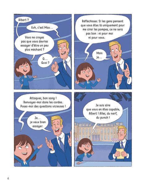 Elle est prête à tout pour commander !Alice, 9 ans et demi, est présidente de la République française. L'exercice du pouvoir ? Un jeu d'enfant, si on décide de le voir comme tel. Entourée de ses meilleurs amis Selma et Harry comme proches conseillers, de Mme Luthier, son ancienne maîtresse de CE2, comme ministre de l'Intérieur et de son chat Gaspard aux finances, Alice s'empare des sujets brûlants : écologie, éducation, statut de la fonction présidentielle, rien ne l'effraie ! Contrairement à ses homologues étrangers, souvent décontenancés par les décisions de la (très) jeune présidente française ! Citoyens, citoyennes, préparez-vous, ça change du journal télé !