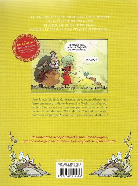 Comme chacun sait, Merlin vit paisiblement dans la forêt de Brocéliande avec sa fille, Aliénor. enfin, paisiblement. pas si sûr ! Enseigner sa magie à Aliénor n'est pas de tout repos, surtout qu'elle ne semble pas avoir de don particulier. Jusqu'au jour où ils partent en forêt à la recherche de Mandragores, racines magiques essentielles à certaines potions mais dont le cri quand on les arrache tue l'arracheur imprudent sur le champ : miracle, Aliénor résiste aux cris de Mandragore ! En revanche, Merlin, qui faisait son malin, est tué sur le coup. Son fantôme, encore plus ronchon que feu Merlin, n'entend pas rester mort bien longtemps et ce sera cette fois à Aliénor de le tirer d'affaire...