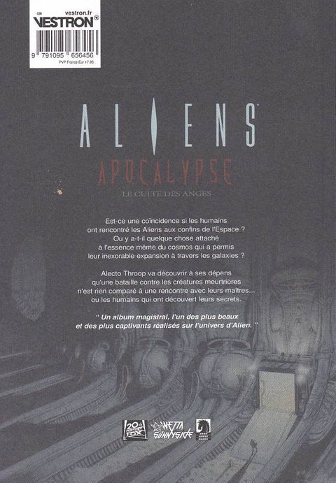 Est-ce une coïncidence si les humains ont rencontré les Aliens aux confins de l'Espace ? Ou y a-t-il quelque chose attaché à l'essence même du cosmos qui a permis leur inexorable expansion à travers les galaxies ? Alecto Throop va découvrir à ses dépens qu'une bataille contre les créatures meurtrières n'est rien comparé à une rencontre avec leurs maîtres... ou les humains qui ont découvert leurs secrets. Un album magistral, l'un des plus beaux et des plus captivants réalisé sur l'univers d'Alien.