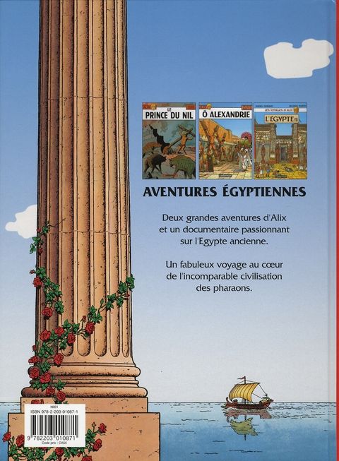 Lors de la conquête de la Gaule par César, Alix, jeune esclave gaulois, devient citoyen romain. Sous la protection de César et en compagnie d'Enak, un jeune égyptien, il parcourt le monde antique et dénoue de nombreuses intrigues. Un voyage au coeur de la civilisation des pharaons au moyen de photographies actuelles et de reconstitutions des temples, statues, etc.