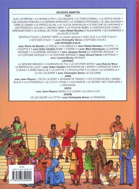 Le monde contemporain d'Alix est décrit à travers ses habitudes vestimentaires et son costume. Il voyage parmi les peuples antiques traditionnels, tels les Romains, continue son périple chez les Egyptiens de la basse époque et de la période ptolémaïque. Y rencontre les populations locales, Gallo-Romains comme des civilisations moins connues, Méroé, Napata, Sassanides, Chypriotes, etc.
