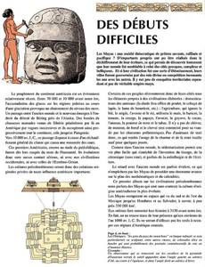 Pour découvrir ce peuple d'Amérique centrale qui fonda une civilisation s'étendant au Mexique, au Guatemala et au Honduras : calendrier solaire de 365 jours, pyramides, écriture hiéroglyphique, cités de Copan, de Tikal, de Palenque, etc.