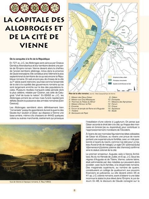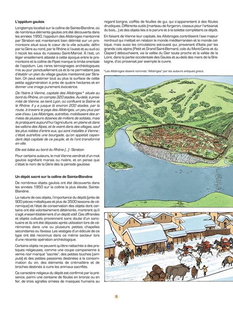 Un riche parcours en images dans la ville de Vienne à l'époque antique, alors capitale du peuple gaulois des Allobroges. Vienne est aujourd'hui, avec Lyon, la cité qui concentre le plus important patrimoine gallo-romain, dont de nombreux vestiges architecturaux en bon état de conservation. Précis et vivant, le travail de Gilbert Bouchard reconstitue tous les détails de la vie quotidienne à Vienne du temps d'Alix.