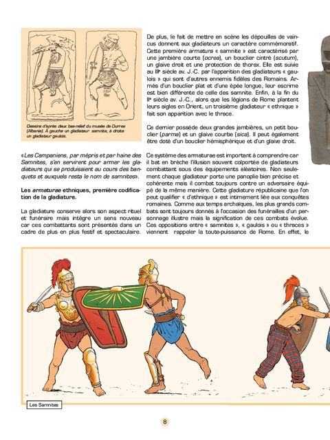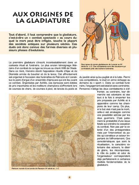 Pour découvrir, en suivant Alix et Enak, les gladiateurs de la Rome antique, leurs armes, leur préparation au combat, les grandes arènes romaines, ou encore les jeux du cirque.