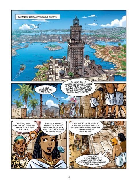 Depuis la Sardaigne où il a été pris en charge par le gouverneur Calénus Alix n'a qu'une idée en tête : retrouver la trace de son père. Ce dernier est devenu esclave en Egypte. Alors que des ouvriers d'un chantier tentent d'attenter à la vie de la reine Bérénice en visite sur celui-ci Astorix la sauve. De son côté Alix s'embarque vers le pays des Pharaons pour retrouver son père. Débarqué à Alexandrie il fait la rencontre de Tahoser la fille du Grand Prêtre. C'est dans cette ville qu'il découvre une conspiration contre la souveraine.Arrivera-t-il à la sauver et à retrouver Astorix ?