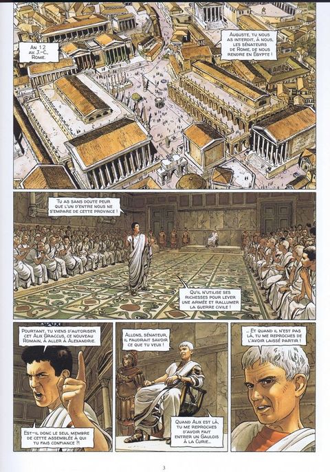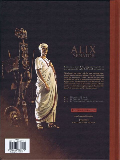 En complément de l’édition courante, ce tirage limité à 7.000 exemplaires bénéficie d’un dos toilé, d’un visuel de couverture inédit et d’un dossier spécial de 8 pages consacré à Alexandrie. Alexandrie, an 12 avant Jésus-Christ. Accompagné de ses fils Titus et Khephren, Alix Gracchus, désormais sénateur romain, parvient à Alexandrie, où il est en mission pour le compte de son ami et protecteur, le puissant empereur Auguste. Suite aux événements tragiques survenus dans La Trahison des rapaces, Alix doit retrouver la trace du général Quintus Rufus, qu’Auguste soupçonne d’être responsable des meurtres d’Agrippa et de Lépide. Revenir ainsi en Egypte est peut-être aussi une occasion unique, pour Alix, de venger enfin la mort du père de Khephren, Enak, son ancien compagnon d’aventures. Sur place, Alix est attendu par une vieille connaissance, le préfet Barbarus. Mais aussi, dans l’ombre, par d’autres personnages, qui ne lui veulent manifestement pas du bien… Un nouvel arc narratif s’ouvre pour le célébrissime personnage créé par Jacques Martin : devenu sénateur de Rome alors qu’il aborde l’âge mûr, Alix vit de nouvelles et trépidantes aventures imaginées par Valérie Mangin et mises en images par Thierry Démarez. Une déferlante d’images fortes pour une reconstitution saisissante du quotidien du monde antique. Un événement !