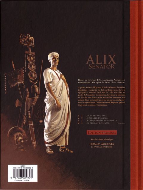 Reporté au 19 novembre ! Rome, été de l’an 12 avant Jésus-Christ. Par une nuit sombre, une trentaine de personnages anonymes se sont réunis dans le bois des Furies, leurs visages dissimulés par des masques d’oiseaux. Mûs par le désir de vengeance ou la passion politique, tous brûlent d’abattre l’empereur Auguste, qualifié de tyran, et de le remplacer par le fils de César, Ptolémée César alias Césarion, que l’on pensait disparu. Glaive à la main, les conjurés aux faciès de rapaces jurent la perte d’Auguste l’usurpateur. Au même moment, tout juste revenu d’Egypte d’où il a ramené son vieux compagnon Enak donné pour mort, Alix Graccus doit affronter une succession de graves déconvenues. Considéré comme un traître ennemi de Rome, Enak est arrêté sur ordre de l’empereur, tandis que le courroux d’Auguste s’abat sur Alix, bientôt menacé d’être déchu de son statut de sénateur et de perdre tous ses biens. C’est le moment que choisissent les ennemis d’Auguste pour proposer à Alix de rejoindre leur conjuration ; ils parviennent même, à la faveur d’une profonde crise d’adolescence, à rallier à leur cause le jeune Khephren, le fils d’Enak devenu le fils adoptif d’Alix… Pleine de surprises et de rebondissements, voici la nouvelle aventure du sénateur Alix, vaste fresque où s’entremêlent les passions humaines, les liens du sang et la trame de l’Histoire. Magistral !