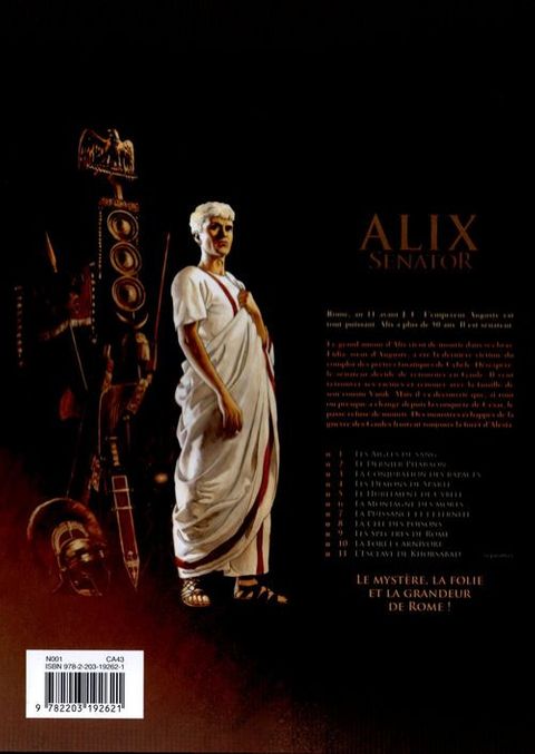 Alix de retour à Alésia ! Répondant à l’invitation de son cousin, Alix est de retour en Gaule. Vanik, devenu gouverneur, veut faire renaître la splendeur perdue d’Alésia. Non loin de l’ancien oppidum d’étranges créatures se terrent. Ils sont les vétérans mutilés de l’armée maudite de Vercingétorix. Les ombres torturées du passé s’étendent sur le présent. Pris au piège de la forêt gauloise et de ses créatures, Alix devra faire face à la haine et aux rancœurs tenaces.