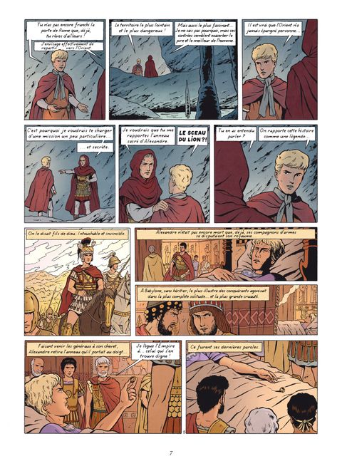 À Rome, la guerre civile est sur le point d'éclater entre Pompée, le général qui administre Rome depuis des années et son rival César, qui vient tout juste de rentrer de Gaule en conquérant victorieux, auréolé de gloire. La balance du pouvoir s'apprête à changer de camp. Mais l'ambitieux César, à qui l'on prête le projet de transformer la république en Empire, ne veut pas se contenter de ses conquêtes occidentales. Fasciné par l'Orient, il confie une mission secrète à Alix : trouver et rapporter l'anneau réputé magique du plus grand conquérant que l'Histoire ait connu, Alexandre. César y voit à la fois une protection divine et l'instrument de ses desseins : quiconque sera porteur de l'anneau pourra légitimement revendiquer l'union politique de l'Orient et de l'Occident. Pour retrouver l'anneau, Alix ne dispose que d'une piste : de mystérieuses pièces d'or frappées à l'effigie d'Alexandre. Sous la conduite d'un prisonnier, Asham, Alix, Enak et l'homme de confiance de César, le gaulois Luctérius, s'efforcent d'en retracer la provenance, direction le Levant. Affrontant mille dangers, ils ne savent pas encore qu'ils parviendront jusqu'à l'étrange et sauvage Bactriane - l'actuel Afghanistan -, ultime conquête d'Alexandre le Grand.