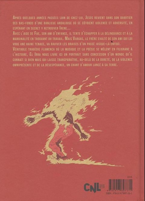 Véritable tragédie flamenca où la musique et la poésie se mêlent en filigrane à l'histoire, El Irra nous livre ici un portrait sans concession d'un monde qu'il connaît si bien mais qui laisse transparaître, au-delà de la dureté, de la violence omniprésente et de la désespérance, un chant d'amour lancé à sa terre. Après quelques années passées loin de chez lui, Jesus revient dans son quartier des bas-fonds d'une banlieue andalouse où se côtoient violence et adversité. Il espère en secret y retrouver Irène, son ancienne fiancée, devenue mère après son départ et qui survit depuis en se prostituant. Avec l'aide de Fae, son ami d'enfance, il tente d'échapper à la délinquance et à la marginalité, en trouvant du travail. Mais Vargas, le frère exalté de son ami qui lui voue une haine tenace, va raviver les braises d'un passé jusque-là enfoui.