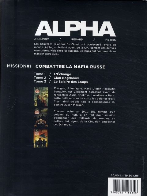 Les nouvelles relations Est-Ouest ont bouleversé l'ordre du monde. Alpha, un brillant agent de la CIA, combat ces dérives meurtrières. Mais chez les espions, les loups ont coutume de se manger entre eux... Cologne, Allemagne. Hans Dieter Horowitz, banquier, est violement assassiné avant de rencontrer Assia Donkova. Localisée à Paris, cette belle moscovite visite les galeries d'art. C'est ainsi qu'elle fait la connaissance du peintre Julien Morgan. Chacun cache son jeu... Elle, femme d'un colonel du FSB, a en fait pour mission d'échanger des milliards de roubles en dollars. Lui, agent de la CIA, doit empêcher cet échange...