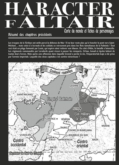 Au jeu des stratèges, il faut vaincre ou périrLerederik a fait dans Altin une entrée fracassante. Au péril de sa vie, Mahmud tente de contenir le flux ininterrompu de soldats impériaux qui s’engouffrent dans la ville. La survie de la Türkiye dépend de cette bataille, ainsi que du siège de Saint-Michael qui stagne depuis que le pont s’est effondré et que les soldats Türks sont tombés à l’eau. Pourtant, Zaganos diffuse lentement son poison dans les murs de la capitale impériale. Mais Louis est encore là pour déjouer toutes ses ruses. Dans ce bras de fer incessant entre les deux belligérants, qui aura le plus de ressource ? Qui fera pencher le combat en sa faveur ? Au bout du compte, qui mettra l’autre échec et mat ?