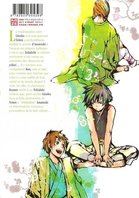 La confrontation entre Ginshu et le tout-puissant Teiten a profondément modifié le monde d'Amatsuki à l'insu de ses propres habitants. C'est ce que Tokidoki va réaliser amèrement à son retour au sanctuaire des chasseurs de yôkai… Il y retrouve avec soulagement Kon, sain et sauf, mais constate avec horreur que celui-ci a tout oublié de leur amitié et du monde duquel il vient. En effet, le clairvoyant Bonten révèle à un Tokidoki médusé que, pour arrêter Ginshu dans sa folie destructrice, le Teiten a “réinitialisé” Amatsuki en réécrivant les existences prisonnières de la toile céleste…