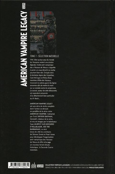 Mon tome préféré de la série "American Vampire" est finalement ce spin-off mené tambour battant par Snyder aux côtés d'un Sean Murphy qu'on ne présente plus. Véritable récit d'infiltration commando, le tome se lit comme un film horrifique de guerre hyper généreux et on y prend un plaisir...monstre !