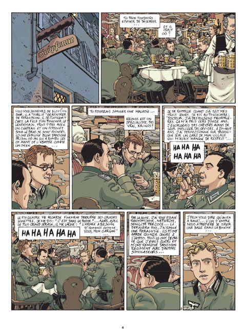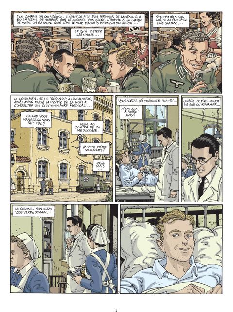 Été 1943. Les craintes de Martin Mahner s’avèrent fondées : il est réquisitionné, comme tant d’autres soldats allemands, pour renforcer le front de l’Est. Alors que Katarina devenue Catherine entre à la même époque dans un groupe de résistants au sud de la France, il est expédié dans une petite ville à l’est de l’Ukraine. Làbas, miné par sa propre lâcheté, le jeune lieutenant observe, impuissant, les dégâts infligés par l’occupant allemand et les massacres perpétrés en parallèle par l’Armée rouge, dont les coups de boutoirs sont de plus en plus sanglants. Progressivement, Martin se lie d’amitié avec son camarade de chambrée, le lieutenant Stefan Paetz, un jeune homme beaucoup plus pragmatique… Nouvel épisode très attendu de l’élégante série de Beuriot et Richelle, et dont chaque épisode est aussi surprenant que soigné. Comme à l’accoutumée, ce tome 6 manifeste un profond souci de véracité historique, offre un sens aigu du détail crédible et un travail tout en finesse sur les nuances de la psychologie humaine.