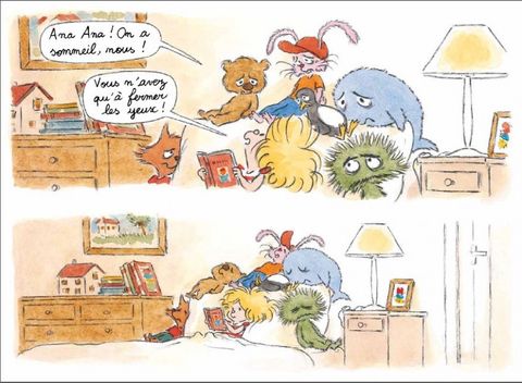 Douce nuit, un album signé Alexis Dormal, est le 1er tome des histoires d'Ana Ana, la petite soeur de l'irrésistible Pico Bogue. La fillette, à la tête d'une armée de doudous, n'a rien à envier à son grand frère : c'est à la baguette qu'elle mène sa joyeuse troupe dans une farandole de bêtises... Douce nuit, 1er épisode des aventures d'Ana Ana. Il est déjà bien tard, et Ana Ana est encore en train de lire. Ses parents lui ont pourtant demandé d'éteindre la lumière depuis longtemps. Ses doudous, d'ailleurs, aimeraient bien dormir. Mais la petite fille, un brin tyrannique, n'éteint pas sa lampe...