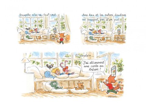 Petite soeur du célèbre Pico Bogue, Ana Ana est une petite fille astucieuse, vive et rigolote. Elle vit de grandes aventures avec ses doudous chéris : Touffe de poils, Grizzou, Pingpong, Zigzag, Goupille, Baleineau. Tel un chef d'orchestre, elle mène à la baguette cette petite troupe joyeuse qui la suit dans ses idées ou ses bêtises les plus fantaisistes.