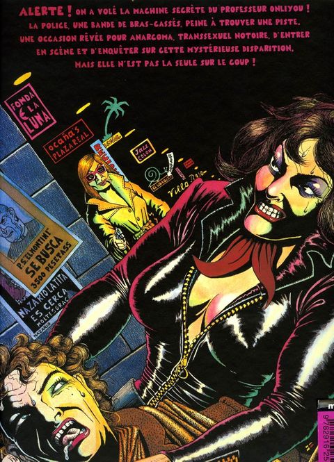 Alerte ! On a volé la machine secrète du Professeur Onliyou ! La police, une bande de bras-cassés, peine à trouver une piste. Une occasion rêvée pour Anarcoma, transsexuelle notoire, d’entrer en scène et d’enquêter sur cette mystérieuse disparition. Mais elle n’est pas la seule sur le coup ! Quand elle ne tapine pas autour des Ramblas ou ne fait pas le travelo dans le Club Torpedo, Anarcoma joue les détectives privés dans les rues de Barcelone. Elle n’hésite pas à user de ses charmes et de sa plastique de rêve pour mener à bien ses recherches. Elle a un faible pour les hommes forts et bien montés, et c’est ainsi qu’elle tombe amoureuse de XM2, un robot ultra-viril fabriqué par deux frères jumeaux savants fous, envoyé lui aussi à la recherche de la machine secrète. Avec lui, elle devra échapper à la dangereuse bande du Señor del Caballito et sauver sa « bite ».
