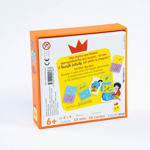 Des stylos qui fuient, des sandwichs qui puent... le sac d'Anatole est plein à craquer!Dans ce jeu, on doit remplir 2 sacs avec 10 objets identiques. Chacun devra faire preuve d'astuce et de tactique pour y parvenir le premier!