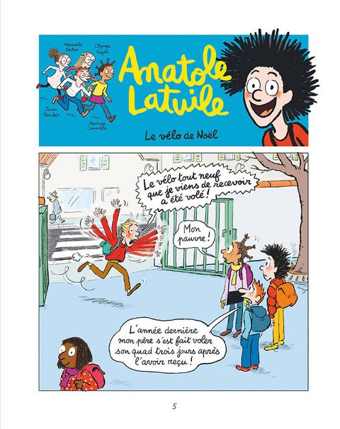 Anatole Latuile est toujours le premier quand il s'agit de provoquer des catastrophes. Mais cette fois-ci, il va tout essayer pour résoudre les problèmes de ses copains... quitte à tout faire capoter ! Anatole est le roi des ennuis ! À l'école, à la maison ou dans la rue, son incroyable imagination le pousse à provoquer sans coup férir les pires catastrophes. Alors quand il s'agit de partir en mission avec son compère Jason, il n'est jamais en reste. Que ce soit pour retrouver un vélo volé, résoudre une énigme de nains de jardins, trafi quer une course d'orientation ou se faire passer pour quelqu'un d'autre... Il ne s'arrête jamais ! Et connaissez-vous le pire ? Il essaie VRAIMENT d'aider les autres... Retrouvez le roi de la gaffe dans de nouvelles aventures, toujours aussi drôles et inventives !