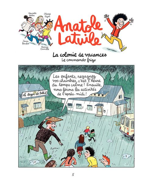 Cette fois-ci, Anatole a décidé de frapper un grand coup ! Comme il n'y a pas de repos pour les vrais gaffeurs, il n'y a pas de raison pour qu'en colonie de vacances Anatole se rachète une conduite... Il est de tous les mauvais coups, qu'il s'agisse d'aller voler des gâteaux dans le frigo des moniteurs, rester dans sa chambre parce qu'il est puni ou bien obéir aux ordres du pauvre capitaine qui tente de sauver leur voilier !... Aaaa... natole ! Un épisode de plus de cette série décoiffante, cousine de « Tom Tom et Nana », dont le héros intenable est plus qu'attachant ! À ne rater sous aucun prétexte !