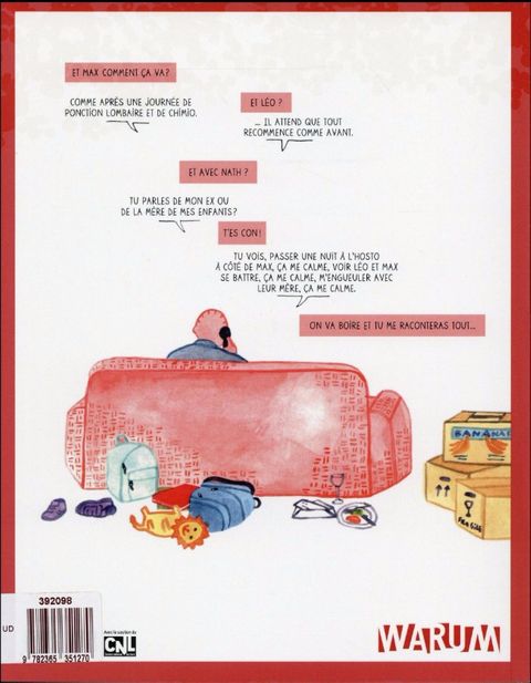 C'est l'autobiographie d'un mec dont le gamin chope une maladie avec un nom qui fait peur, et que sa femme quitte. On aurait pu commencer mieux! C'est l'histoire d'un père dont les fils tirent la gueule quand une nouvelle meuf débarque dans son lit, et qui fait la tronche quand ses enfants lui annoncent que leur mère l'a remplacé. C'est un papa qui se met la boule à zéro avant que son aîné paume sa tignasse alors qu'il n'a rien demandé, c'est son ex qui s'y met aussi quand elle décide de le larguer. C'est un récit qui montre que la vie, c'est parfois une tartine de merde mais, par contre, quand c'est bon, putain, que c'est bon ! Une histoire de maladie montrant un papa et ses deux petits gars qui se défoulent en hurlant dans la voiture « les histoires d'amour finissent mal », mais qui se serrent les coudes pour apprivoiser leur nouvelle vie.