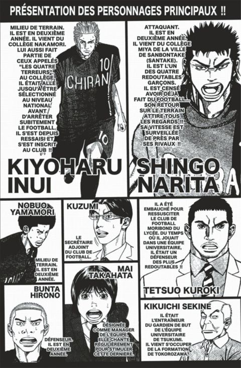 Ces élèves bagarreurs vont apprendre ce qu'est vraiment le respect sur un terrain. Des graphismes très réalistes qui nous emportent dans un univers difficile où les poings vont plus vite que les mots. Un manga qui plaira également aux lecteurs hermétiques au foot.