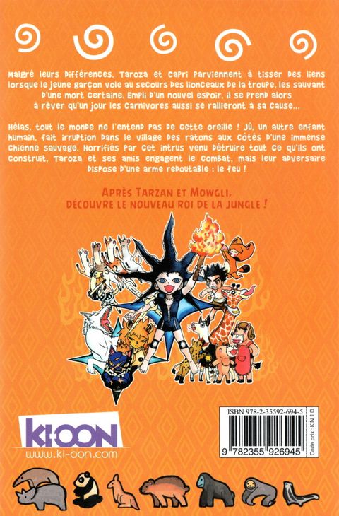 Malgré leurs différences, Taroza et Capri parviennent à tisser des liens lorsque le jeune garçon vole au secours des lionceaux de la troupe, les sauvant d’une mort certaine. Empli d’un nouvel espoir, il se prend alors à rêver qu’un jour les carnivores aussi se rallieront à sa cause… Hélas, tout le monde ne l’entend pas de cette oreille ! Jû, un autre enfant humain, fait irruption dans le village des ratons aux côtés d’une immense chienne sauvage. Horrifiés par cet intrus venu détruire tout ce qu’ils ont construit, Taroza et ses amis engagent le combat, mais leur adversaire dispose d’une arme redoutable : le feu !