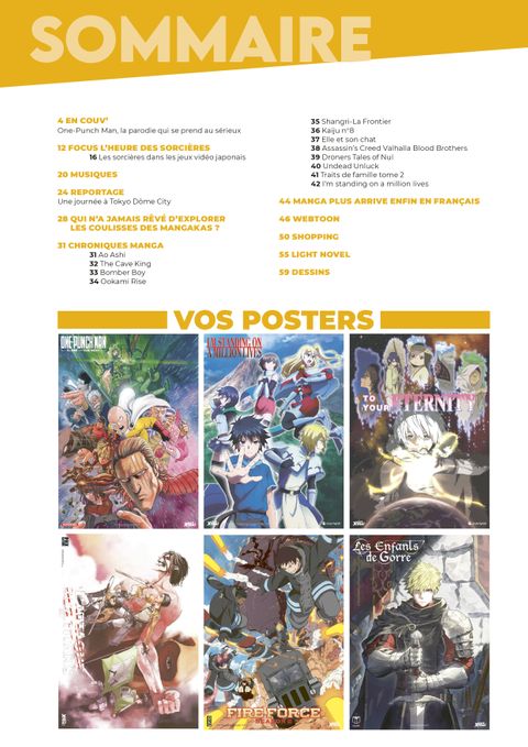 Au sommaire de ce dernier numéro de l'année, <em>One-Punch Man</em> arrive à poing nommé !Après 23 tomes en 5 ans et l'<em>anime</em> qui a cartonné, on revient sur le <em>shônen One-Punch Man</em> dans un dossier forcément "coup de poing" !Retrouvez également notre focus "L'heure des sorcières" ! Une analyse du phénomène culturel, magique, qui envahit les mangas mais aussi les jeux vidéo !On vous emmène explorer les coulisses des mangakas et passer une journée à Tokyo Dôme City avec un chouette reportage photos exclusif, parrainé par l'Office du tourisme de Tokyo (s'il vous plait) ! On vous dit tout sur les meilleurs mangas du moment : <em>Kaiju n°8, Ao Ashi, The Cave king, Shangri-La Frontier</em>... Mais aussi, les webtoons, parce qu'on va pas se tromper : il se passe bien un truc sur le sujet, non ?Sans oublier enfin les 6 posters inédits qui vous attendent dans ce nouveau numéro !  La rédaction d’Animeland est composée de journalistes spécialisés dans le manga, l’anime et le Japon. Certains y ont habité ou y habitent encore.