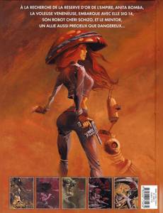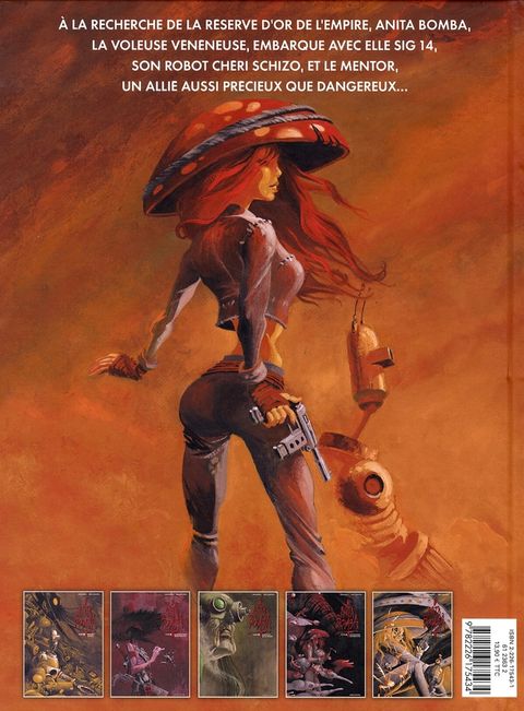 a la recherche de la réserve d'or de l'empire, anita bomba, la voleuse vénéneuse, embarque avec elle sig 14, son robot chéri schizo, et le mentor, un allié aussi précieux que dangereux.