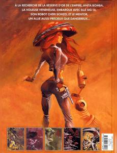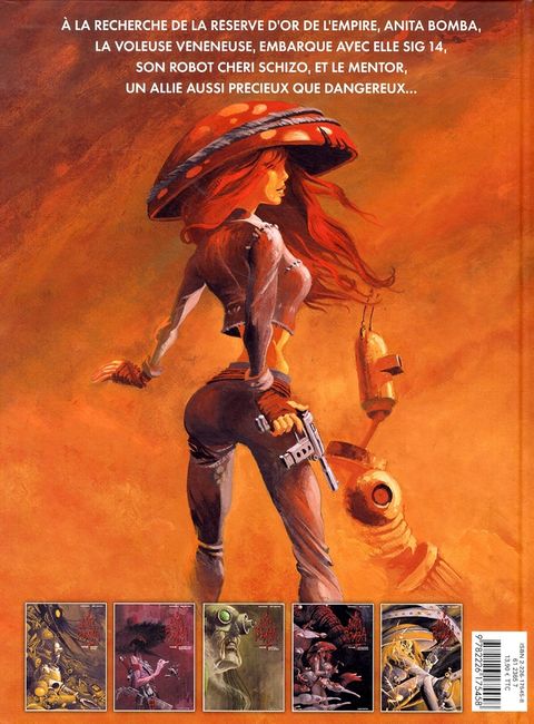 a la recherche de la réserve d'or de l'empire, anita bomba, la voleuse vénéneuse, embarque avec elle sig 14, son robot chéri schizo, et le mentor, un allié aussi précieux que dangereux.