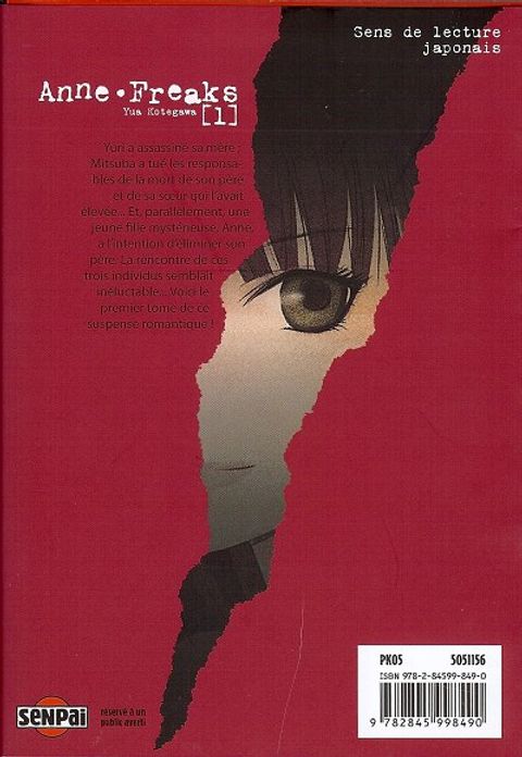 Yuri a assassiné sa mère ; Mitsuba a tué les responsables de la mort de son père et de sa soeur qui l'avait élevée... Et parallèlement, une jeune fille mystérieuse, Anne, a l'intention d'éliminer son père. La rencontre de ces trois individus semblait inéluctable... Voici le premier tome de ce suspense romantique !