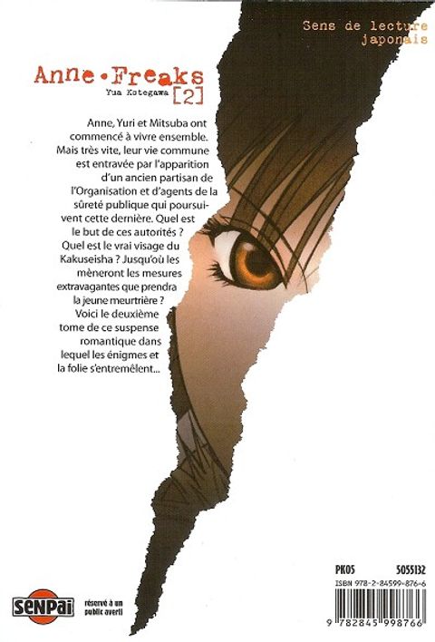 Anne, yuri et mitsuba ont commencé à vivre ensemble. Mais très vite, leur vie commune est entravée par l'apparition d'un ancien partisan de l'organisation et d'agents de la sûreté publique qui poursuivent cette dernière. quel est le but de ces autorités ? quel est le vrai visage du kakuseisha ? jusqu'où les mèneront les mesures extravagantes que prendra la jeune meurtrière ? voici le deuxième tome de ce suspense romantique dans lequel les énigmes et la folie s'entremêlent...