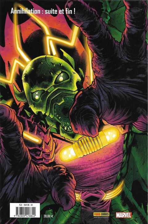 Le succès phénoménal de la revue kiosque MARVEL UNIVERSE démontre l'engouement des lecteurs pour les aventures cosmiques des héros Marvel. Il est vrai que la Maison des Idées propose des histoires passionnantes où tout peut arriver, la preuve avec Annihilation, la saga qui a inauguré le bimestriel d'une manière fracassante. Dans la deuxième partie de cette immense saga cosmique, Annihilus est sorti de la Zone Négative. Après avoir ravagé le monde des Skrulls, le Corps des Nova et d'autres peuplades cosmiques, le voilà qui fonce droit vers la Terre ! Une pléiade d'auteurs prestigieux, au premier rang desquels Keith Giffen (Lobo) vous propose la fin de la saga, ainsi que des épisodes consacrés aux répercussions de cette guerre. Au dessin : Andrea DiVito, Scott Kolins, Mike McKone et bien d'autres !