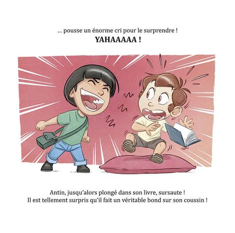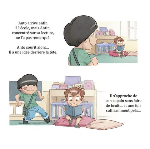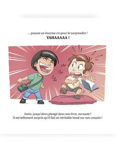 Ce matin-là, Antin arrive à l'école avant son grand copain, Anto. Quand celui-ci débarque, il décide de faire peur à son ami en poussant un énorme cri. Un peu fâché (et vexé d'avoir eu peur), Antin répond en prétendant qu'il est un gros insecte. Et c'est l'escalade entre les deux garnements qui s'inventent des identités toujours plus effrayantes : guêpe, serpent, ours, dragon... Quelle rigolade ! Mais le soir venu, chacun est un peu inquiet seul dans son lit. Antin n'hésite pas à en parler à ses parents qui le rassurent. Et même son grand frère, Louca, dit qu'il veillera sur lui avec ses peluches. Complètement rassuré, Antin s'endort paisiblement.