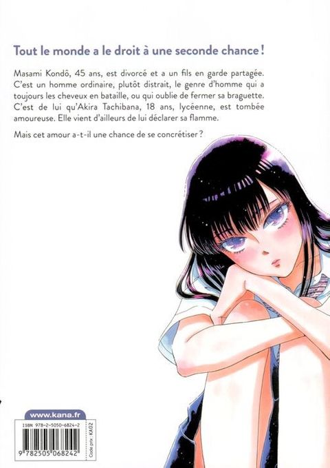 Masami Kondô, 45 ans, est divorcé et a un fils en garde partagée. C’est un homme ordinaire, plutôt distrait, le genre d’homme qui a toujours les cheveux en bataille, ou qui oublie de fermer sa braguette. C’est de lui qu’Akira Tachibana, 18 ans, lycéenne, est tombée amoureuse. Elle vient d’ailleurs de lui déclarer sa flamme. Mais cet amour a-t-il une chance de se concrétiser ?