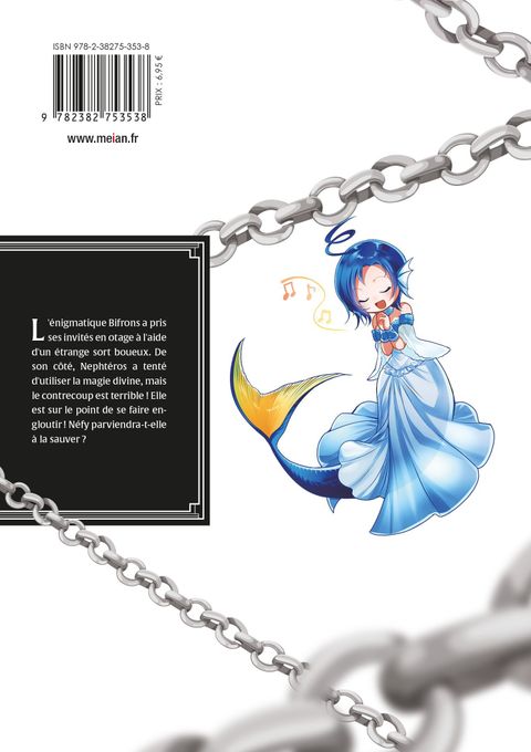 L'énigmatique Bifrons a pris ses invités en otage à l'aide d'un étrange sort boueux. De son côté, Nephtéros a tenté d'utiliser la magie divine, mais le contrecoup est terrible ! Elle est sur le point de se faire engloutir ! Néfy parviendra-t-elle à la sauver ?Zagan va-t-il vraiment sauver Nephtéros ?!