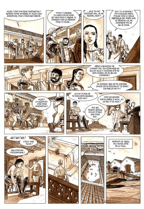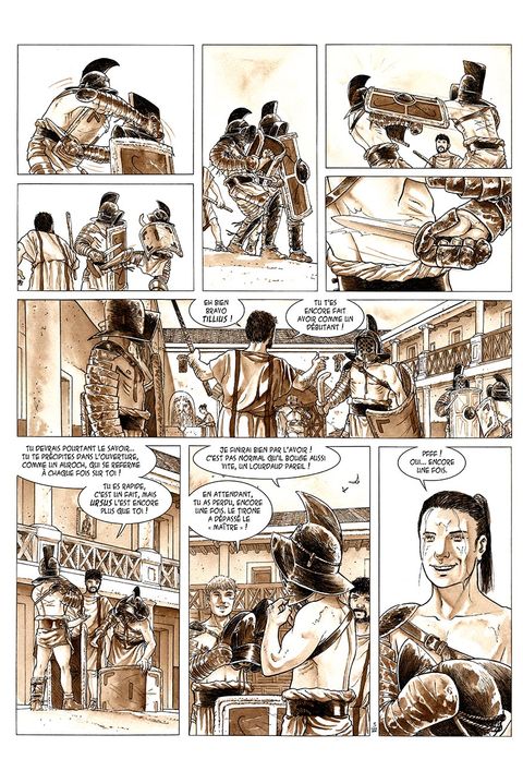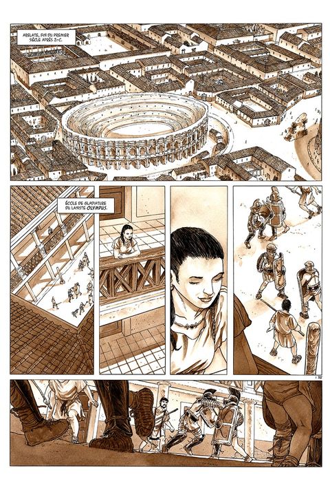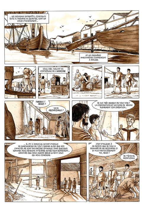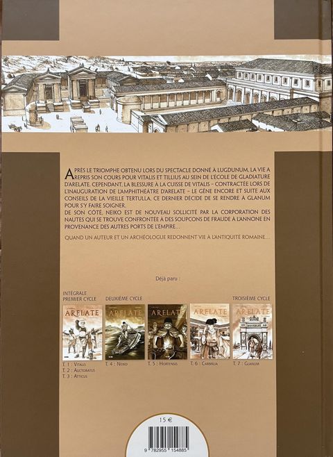 Après le triomphe obtenu lors du spectacle donné à Lugdunum, la vie a repris son cours pour Vitalis et Tillius au sein de lécole de gladiature dArelate. Cependant la blessure à la cuisse de vitalis - contractée lors de linauguration de lamphithéâtre dArles- le gêne encore et suite aux conseils de la vieille Tertulla, ce dernier doit se rendre à Glanum pour sy faire soigner. De son côté, Neiko est de nouveau sollicité par la corporation des Nautes qui se trouve confrontée à des allégations de fraude à lAnnone (service public chargé de distribuer le blé, géré par le préfet de l'annone), en provenance des autres ports de lempire... La série Arelate revient enfin avec ce nouvel opus qui donne le coup de départ du troisième et dernier cycle de cette saga antique qui est dores et déjà une référence en terme de BD sur lantiquité Romaine.