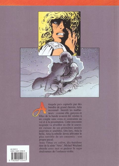 Attaquée puis capturée par des bandits de grand chemin, aria reconnaît bientôt les malfaiteurs : comme elle, garçons et filles de la bande avaient été vendus à un couple sans aveu et contraints au vol et à la prostitution. Cette rencontre inopinée va réveiller en elle le souvenir cuisant de ses premières années asservies et souillées. dès lors, aria la belle, aria la rebelle devra affronter le plus terrible de ses ennemis : son propre passé. Avec vénus en colère, dix-huitième titre de la série " aria ", michel weyland aborde avec tact et pudeur le sujet douloureux de l'enfance violée.
