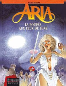De retour en Arnolite, Aria, flanquée du nain Crafouille, fait route vers son château en Arnolite. La fidèle Rexanne, qui s'y morfond seule depuis son départ, guette désespérément son retour. Non loin de là, une troupe de saltimbanques donne de porte en porte de macabres représentations : armé d'une marionnette au regard hypnotique, un ventriloque commence par "séduire" ses hôtes de circonstance, la troupe entière s'introduit ensuite dans le logis, exécute toute la maisonnée, fait main basse sur tous les objets de valeur et reprend enfin sa route vers de prochaines victimes. Tandis qu'Aria aperçoit enfin les tours de son château, Rexanne ouvre la porte au ventriloque et à sa marionnette... Pas de repos pour les aventurières ! Avec La poupée aux yeux de lune, vingt-neuvième épisode de la série "Aria", Michel Weyland nous donne à lire une histoire aux multiples rebondissements. Le temps n'a aucune prise sur Aria, qui a plus que jamais l'aventure chevillée au corps !